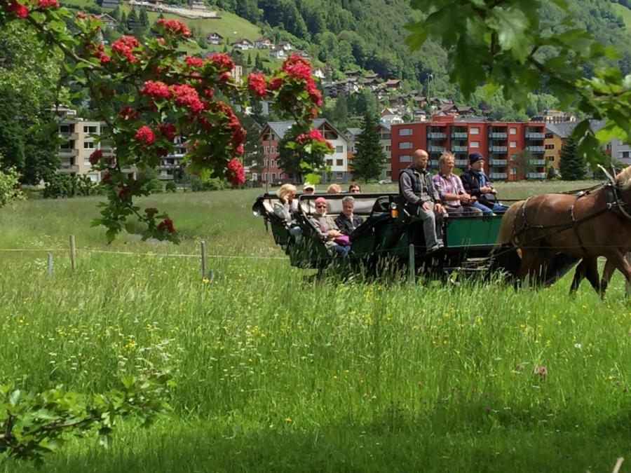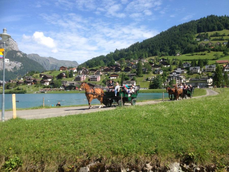 Pferdefuhrwerke prägten für lange Jahre das Verkehrsbild von Engelberg. Koffertransporte der Touristen, Kohlenlieferungen für die Hotels, sonntägliche Vergnügungsfahrten oder winterliche Taillingpartys- alles mit den Pferden. Mit dem Einzug der Automobile und Lastwagen nahm die Bedeutung der Fuhrhaltereien ab, für die Heimfahrten nach langen Skitagen steht heute der bequeme Gratis- Skibus zur Verfügung. All diese Annehmlichkeiten können aber eins nicht ersetzen, den Charme einer Kutschenfahrt. Eine Kutschenfahrt bietet einen anderen Blick auf das Dorf und die Bergwelt; entspannt durch den Ort kutschieren und einfach nur geniessen.